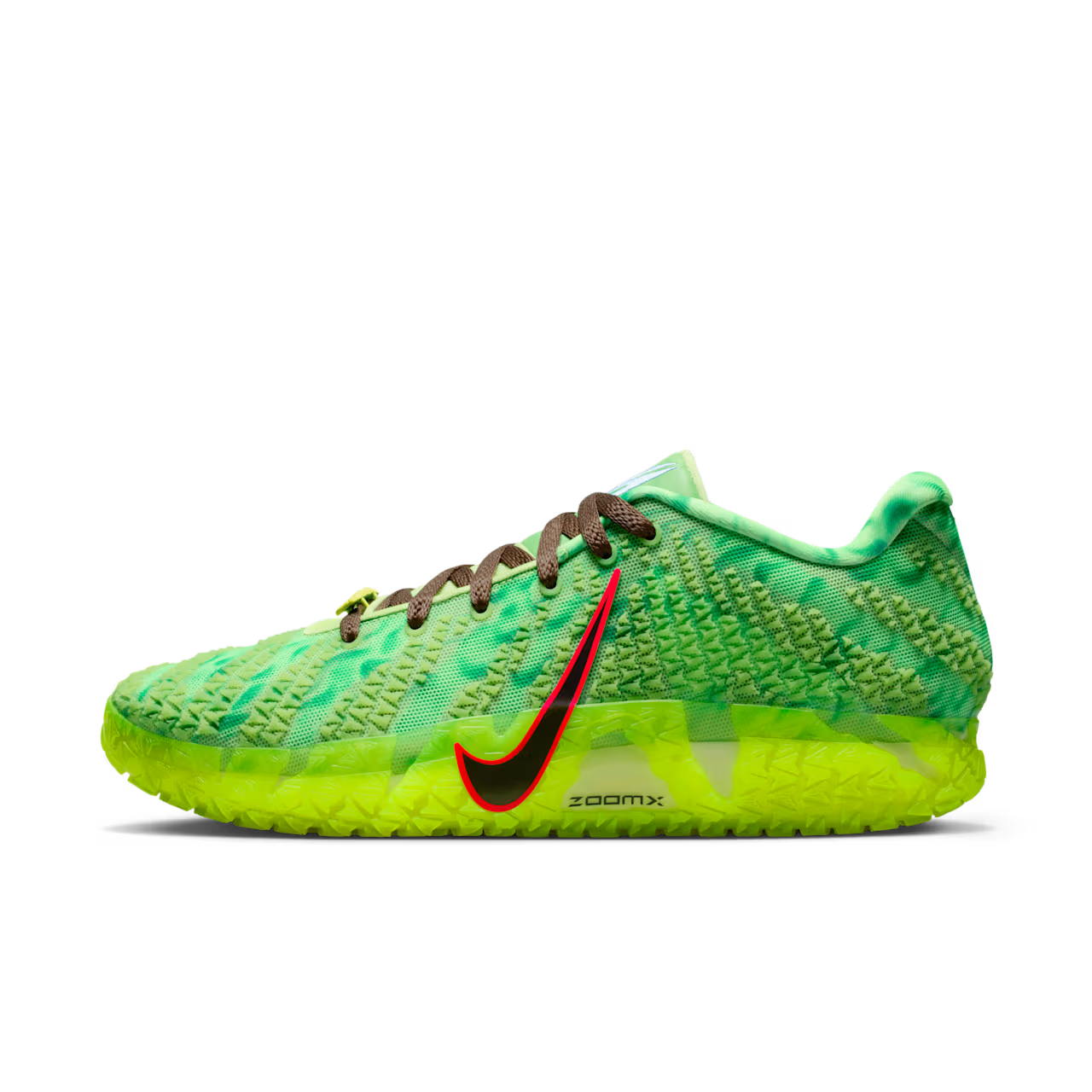 The charged design includes a vibrant, glow-in-the-dark Light Lemon Twist and Hemp green upper, with a matching outsole. A special, fanged dubrae spells out Ja’s surname in glowing veneer. It's all tricks and no treats for your defenders—welcome to the “Spooky Season.”