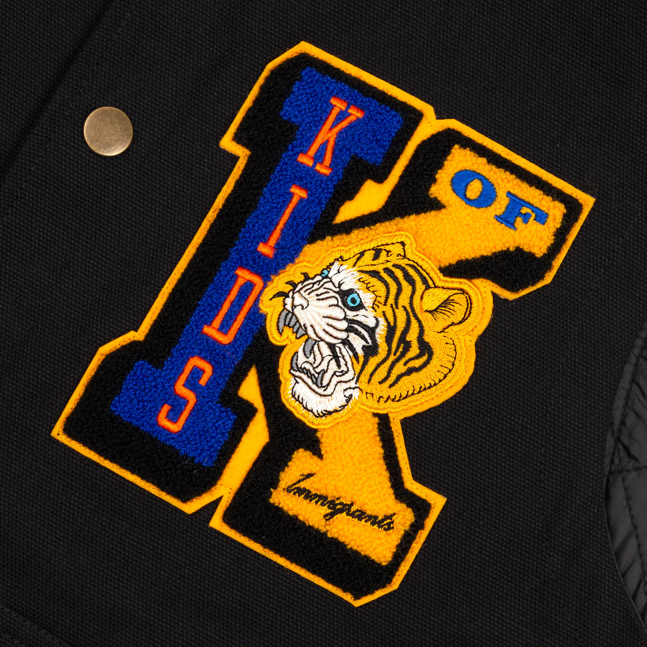 This is a Kids Of Immigrants unisex heavy canvas work vest. It features our new "K" chenille patch sewn into place and a screen-printed back. The shell is made of 100% cotton canvas with hyper-loft quilted insulation and heavy-duty brass snaps.